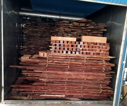 2、干燥一般分兩階段進行,首先進行預干,預干一般采用自然氣干,放在院內通過空氣流動和水分蒸發來達到氣干的目的,使紅木的含水率降低到20%—30%之間。氣干之后,再放入專門的紅木干燥設備內進行干燥處理,要求干燥至水分含量在 8%—12%間。